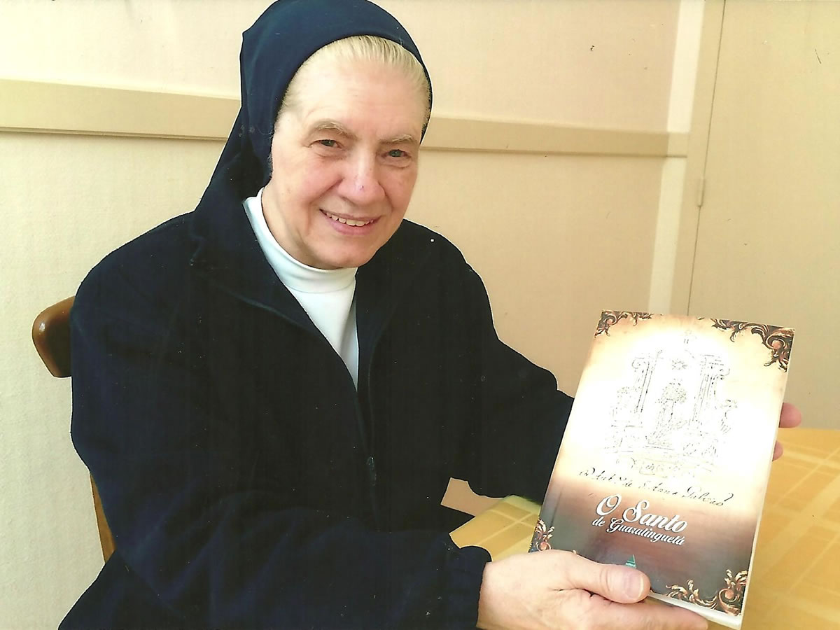 Na foto, a Irmã que recebeu o livro de Frei Galvão e enviou as Medalhas para o Museu Frei Galvão e que por coincidência é de nacionalidade brasileira.